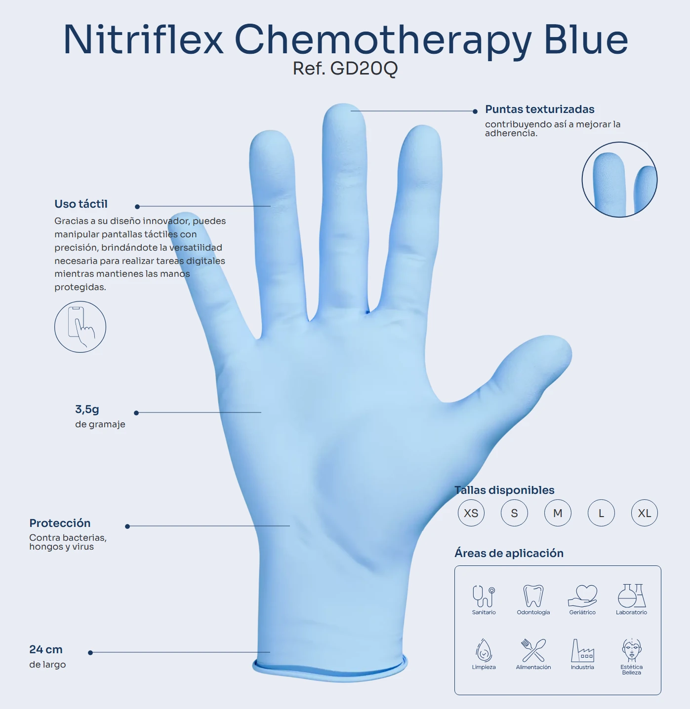 Finos y extra sensibles al tacto debido a que el área de los dedos está texturizada para un mayor agarre tanto en húmedo como en seco.