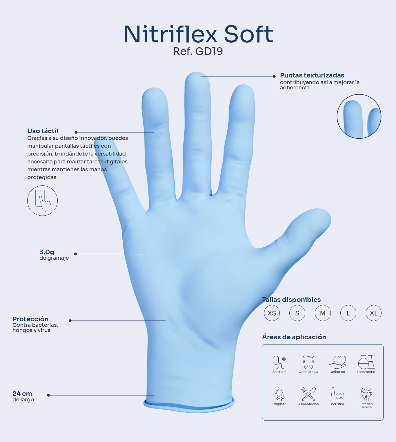 Ultra finos para proporcionar un aumento de la sensibilidad al tacto y con dedos texturizados para un mayor agarre tanto en húmedo como en seco.